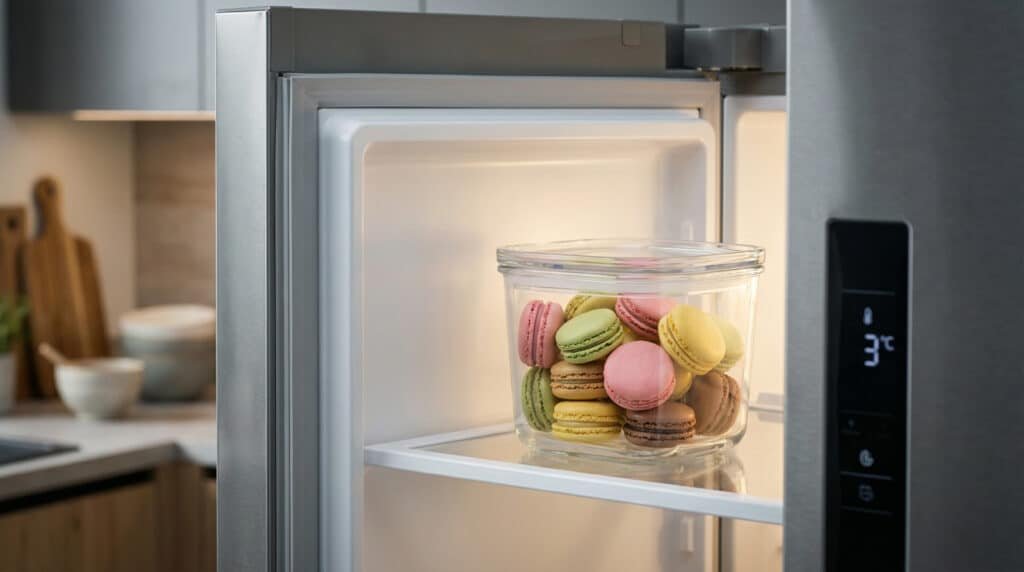 Oui, le réfrigérateur constitue l’environnement de stockage de référence pour les macarons. Les basses températures permettent de figer la ganache et de ralentir l’évolution des ingrédients frais comme le beurre, la crème ou les œufs. Cela préserve la structure du biscuit et la stabilité de la garniture.