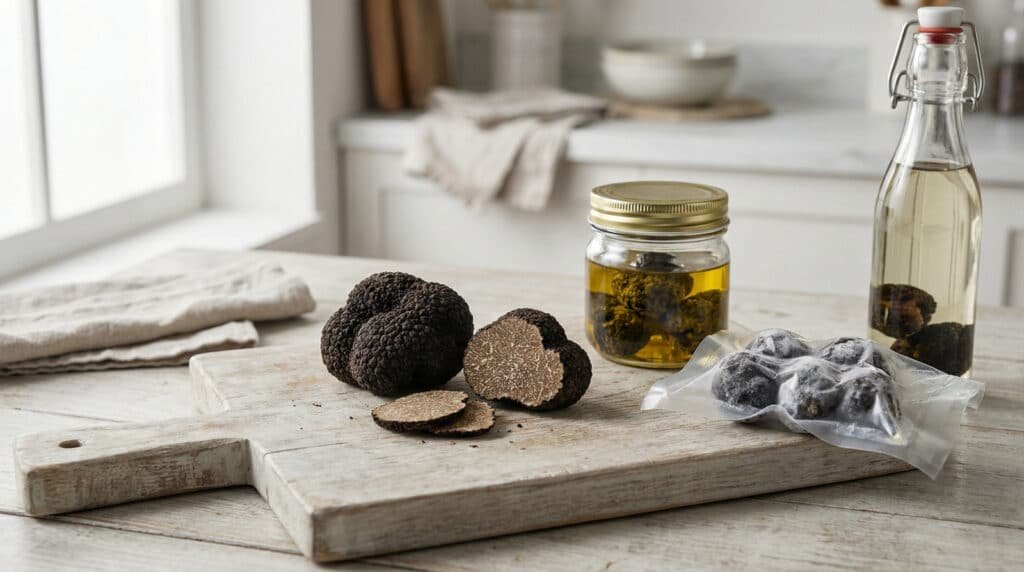 Évitez absolument la conservation dans l’alcool fort ou le vinaigre. Ces liquides agressifs « cuisent » littéralement la chair de la truffe, détruisant sa texture et remplaçant son parfum subtil par une odeur d’éthanol persistante.
