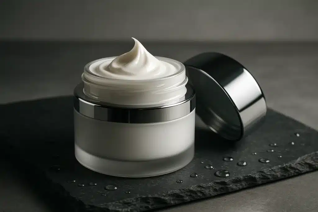 Pot en verre lourd et premium, avec un capuchon métallique sécurisé. Texture crémeuse fondante, qui pénètre en quelques secondes sans laisser de film gras, même par temps humide. Sur l’étiquette, je vois l’acide hyaluronique de bas poids moléculaire pour une pénétration profonde, le collagène soluble, la vitamine E, le beurre de karité, l’huile de jojoba et la vitamine C stabilisée. Ces composants sont essentiels pour l’hydratation et la protection contre les radicaux libres. Le parfum est discret, avec une note de fleurs blanches subtile et apaisante, adapté aux peaux sensibles. Une expérience sensorielle agréable dès l’ouverture. J’apprécie cette texture légère et nourrissante, parfaite pour une application quotidienne, même avant le maquillage. Elle s’étale facilement sans tiraillement, même sur les zones délicates. Le beurre de karité apaise les irritations, tandis que l’huile de jojoba régule la production de sébum, idéal pour un teint mat et équilibré. Je suis impressionné par la qualité des ingrédients mentionnés. Chaque composant a un rôle précis pour la santé de la peau, sans aucun ingrédient agressif.