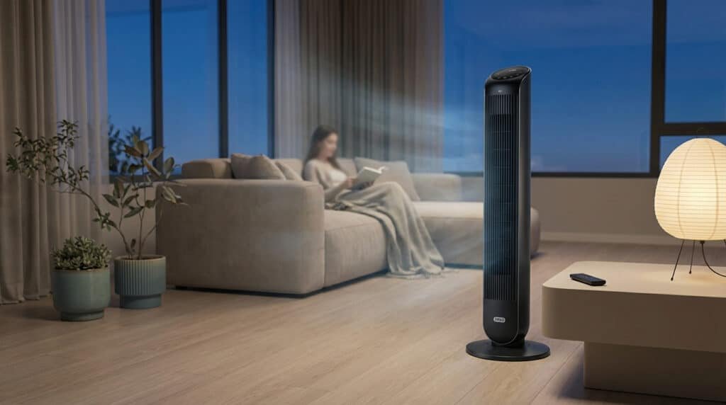 Ne vous fiez pas à sa taille : le flux TurboWind (25 ft/s) fait le job. Il rafraîchit une pièce de 20-25 m² sans peiner. L’oscillation à 90° balaie l’espace efficacement, sans laisser de zones mortes.
