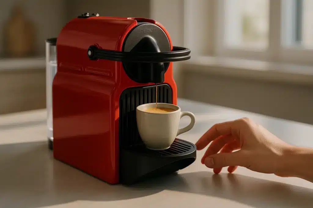 Lorsque j’ai déballé la Nespresso Inissia rouge, je dois avouer que sa couleur vive m’a immédiatement marqué. Ce choix n’est pas anodin : le rouge est une signature de Nespresso pour cette gamme compacte. Il s’agit d’un clin d’œil au design audacieux et contemporain qu’ils souhaitent offrir. Personnellement, j’apprécies que ce modèle ne se cache pas dans un coin de la cuisine, au contraire : sa teinte éclatante en fait un objet déco à part entière. Même si ce n’est pas un critère technique, je trouve que ce détail renforce le plaisir d’utilisation quotidien.